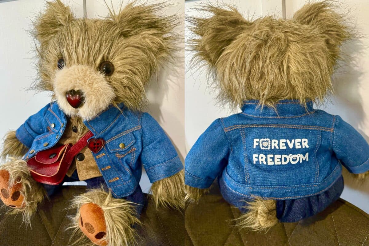 Designed for outings with his new friends, this jacket is what Button Heart wears as he experiences life, spreads awareness, and reminds the world to care for children in places no child should ever be. With the Forever Freedom logo proudly printed on the back, itโs more than fashion, itโs a statement of love and liberation.